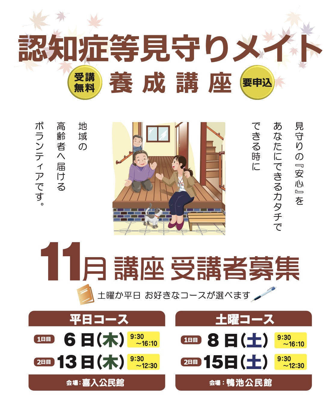 こちらは「認知症等見守りメイト養成講座」の申込フォームです。